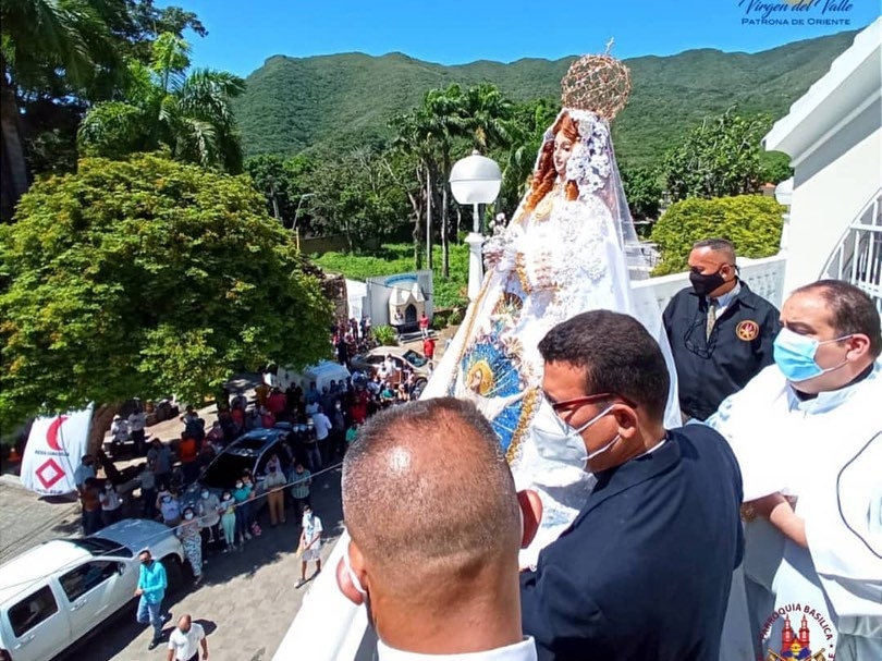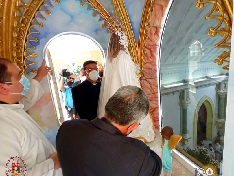 En una ceremonia sin feligresía se realizó la tradicional bajada y entronización de la Patrona de Oriente, al terminar la ceremonia los devotos la pudieron ver desde la calle.