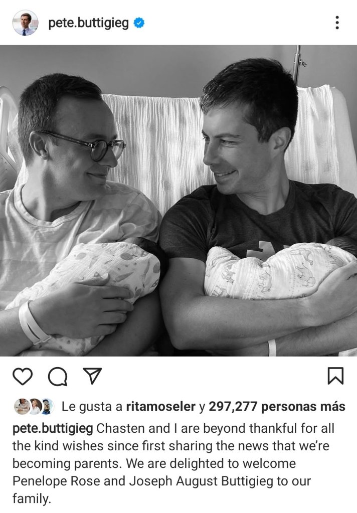 El Secretario de Transporte de Estado Unidos, Pete Buttigieg anunció que está feliz por el nacimiento de sus hijos! El mismo compartió la noticia en su cuenta de Instagram.