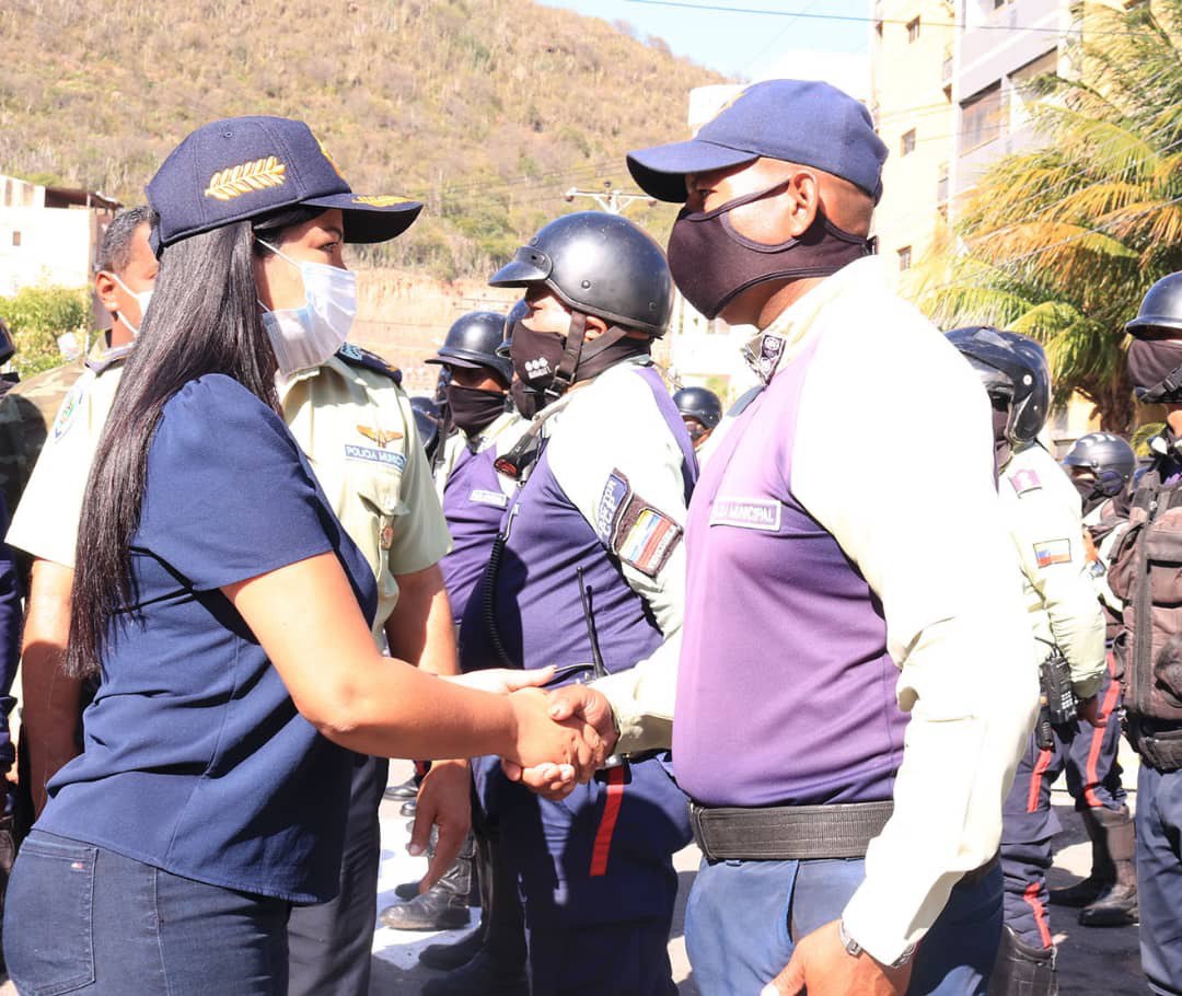 En su primer acercamiento oficial con funcionarios policiales luego de haber sido juramentada como alcaldesa, Sugey Herrera participó en el acto de salutación a los uniformados de la Policía del municipio Simón Bolívar.