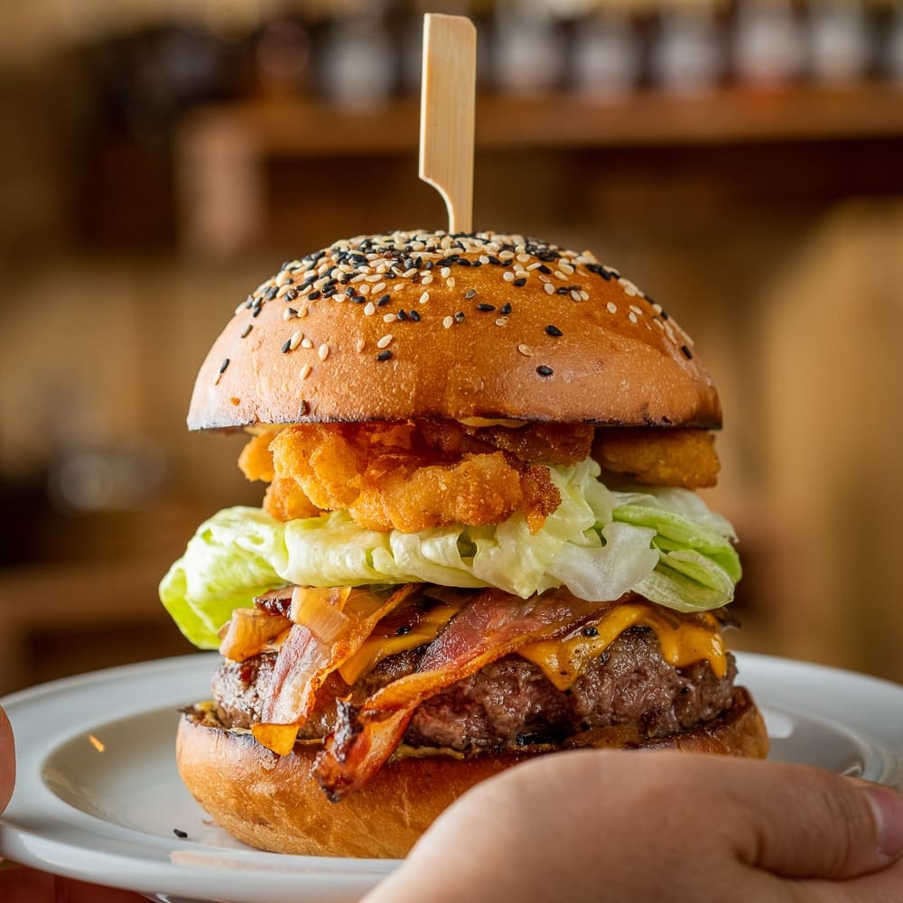 La «Tropical», lleva un pan brioche de auyama, hecho por ellos mismo, dos smash angus de 90g, una salsa de barbecue a base de tamarindo, un queso provolone de 50g empanado con Doritos, picles artesanales, una ensalada tropical de repollos blanco y morado, tocineta caramelizada y finalizada con una guasacaca de manga verde.