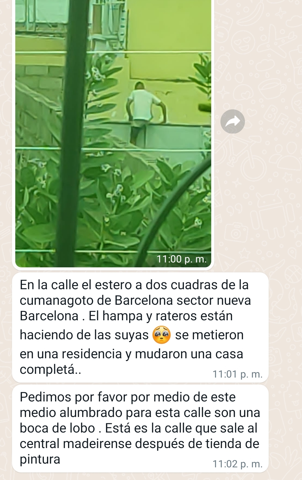 Desde la calle El Estero, a dos cuadras de la avenida Cumanagoto de Barcelona, sector nueva Barcelona solicitan que puedan colocar el alumbrado público, ya que los «rateros» se aprovechan de la oscuridad para hacer sus fechorías.