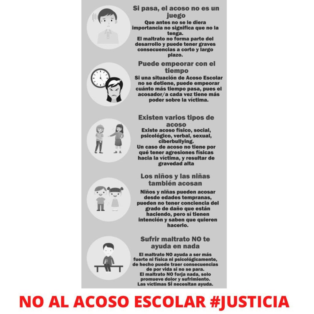 En una imagen que acompaña el mensaje del fiscal Tarek William Saab, se lee que existen varios tipos de acoso escolar. Además, en la imagen se recuerda que si una situación de acoso no se atiende a tiempo podría multiplicarse e incluso empeorar con el paso del tiempo. «El acosador/a tiene más poder sobre la víctima».