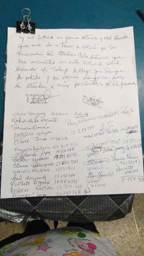 “Al parecer una de las familiares se molestó por esto y supuestamente es juez, poco tiempo después se presentaron funcionarios que se llevaron a la doctora detenida y quedaron sin atención el resto de los pacientes del servicio”. Explicó el Dr. Velásquez.