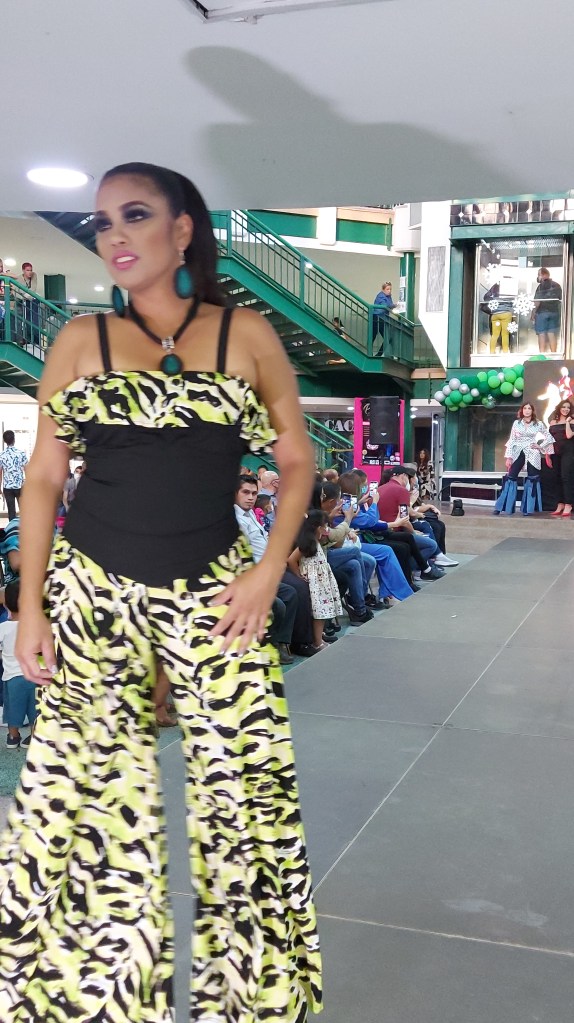En medio de un ambiente cargado de música, baile e imágenes que trasladaban a los invitados a un viaje hacia otras décadas, la emprendedora del diseño de modas Elena Farinhas presentó su línea de ropa para damas Phoenix Collection en la plazoleta del Centro Comercial Ciudad Puente Real de Barcelona.
