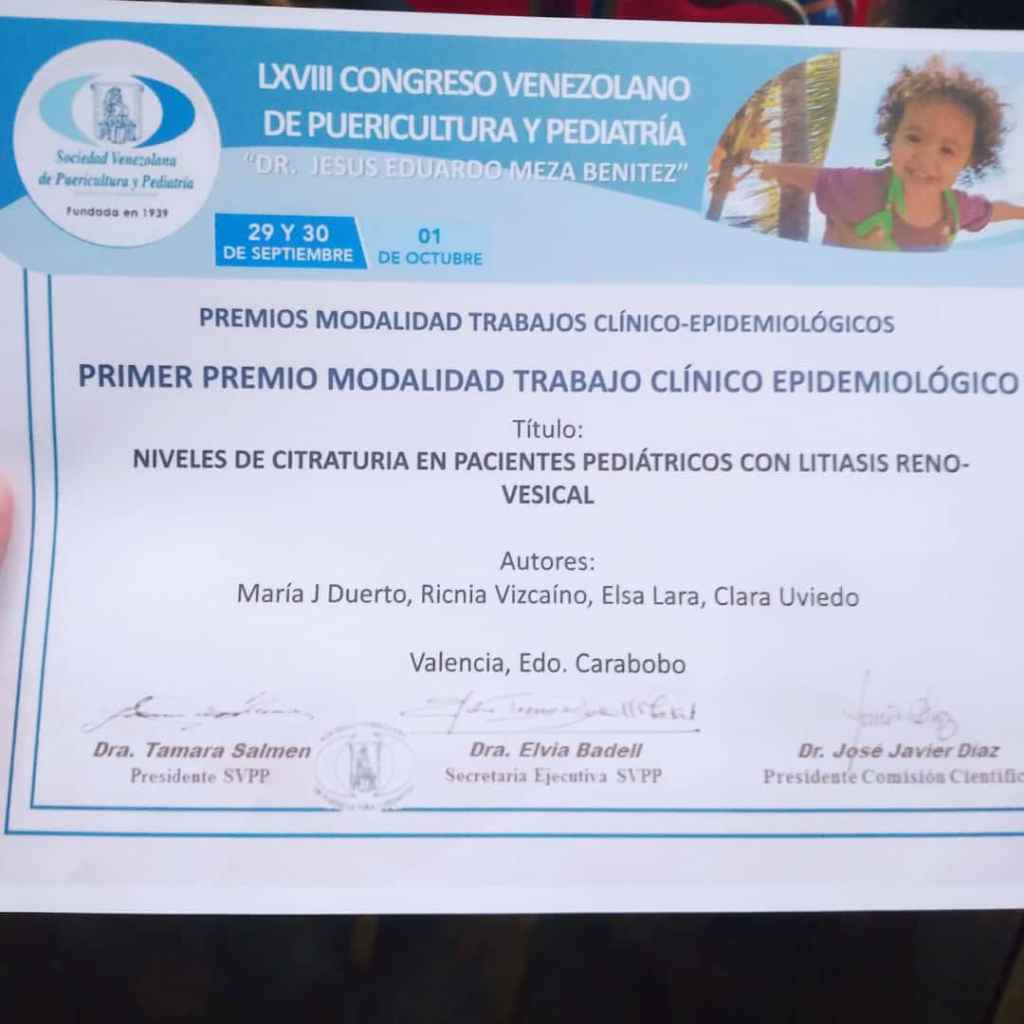 Con un trabajo clínico epidemiológico para conocer cuando los pacientes tienen riesgo de padecer de cálculo en los riñones, dos nefrólogas anzoatiguenses ganaron el primer lugar en esta modalidad como parte del Congreso Nacional de Pediatría, realizado recientemente en Valencia estado Carabobo.