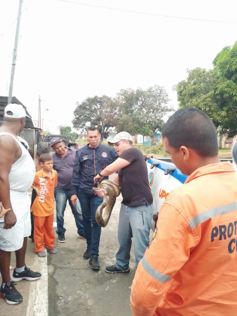 Según informó la periodista Pableysa Ostos en su cuenta Twitter, funcionarios de Protección Civil y el rescatista independiente Samuel Paredes, lograron rescatar del interior de una vivienda ubicada en San Félix, estado Bolívar, una anaconda de 2 metros treinta centímetros de longitud.