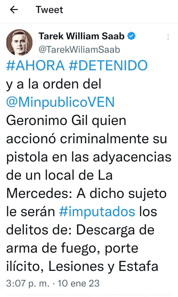 El fiscal general de la República, Tarek William Saab informó este martes 10 de Enero que fue detenido el actor Jerónimo Gil.