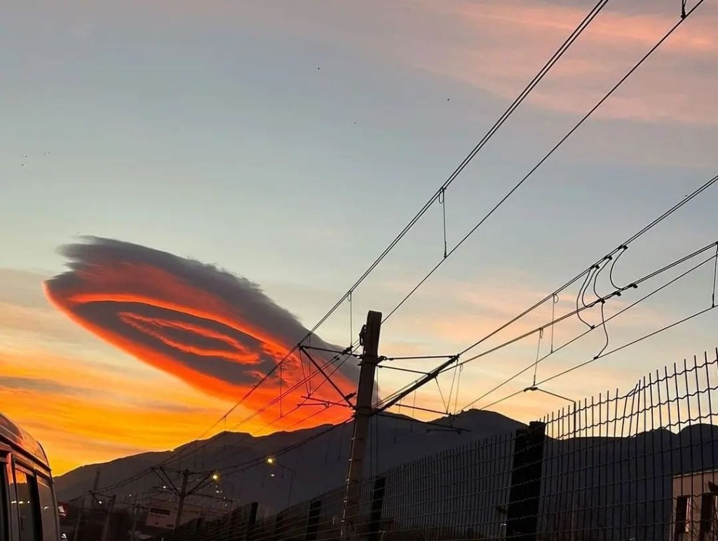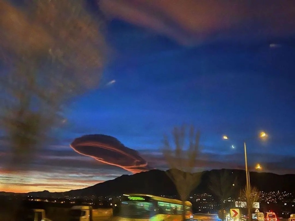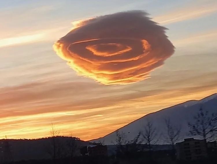 Este tipo de formación se conoce como «nube lenticular», y se produce cuando el aire es estable y los vientos soplan a través de colinas y montañas desde la misma o similar dirección a diferentes alturas a través de la troposfera, explican los expertos.
