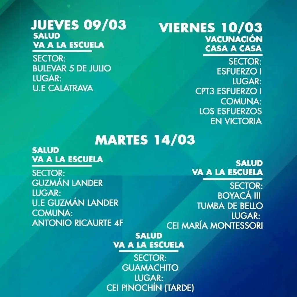 Revisa el cronograma y conoce los detalles sobre las jornadas que, bajo instrucciones de la alcaldesa @sugeyherreram, buscan garantizar al pueblo barcelonés condiciones óptimas de salud, indica la publicación del gobierno municipal