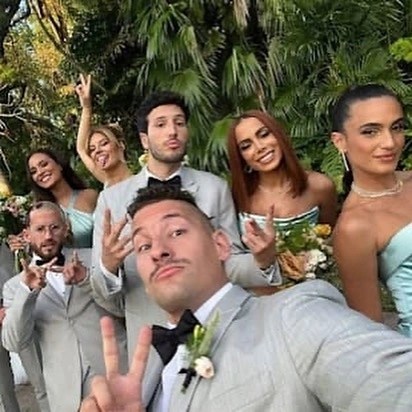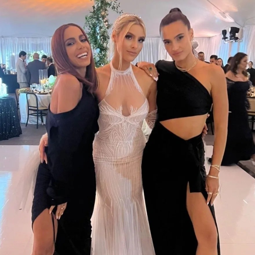 Entre las damas de honor se pudo ver a la cantante Anitta preparándose. En otra de las historias, Pons compartió una fotografía grupal con sus ocho acompañantes, que lucieron vestidos satinados de color azul agua con accesorios plateados.