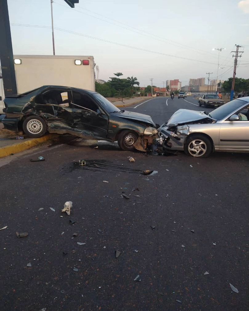 Según refieren funcionarios de Protección Civil el choque entre un Hiunday Elantra, color plata y un Honda Civic, ocurrió en la redoma de Molorca.