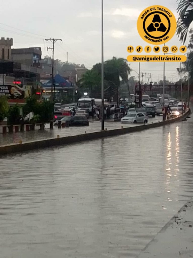 En la Av. Jose Martí de Las Mercedes, en Caracas, había una fuerte cola debido a que la vía estaba inundada.