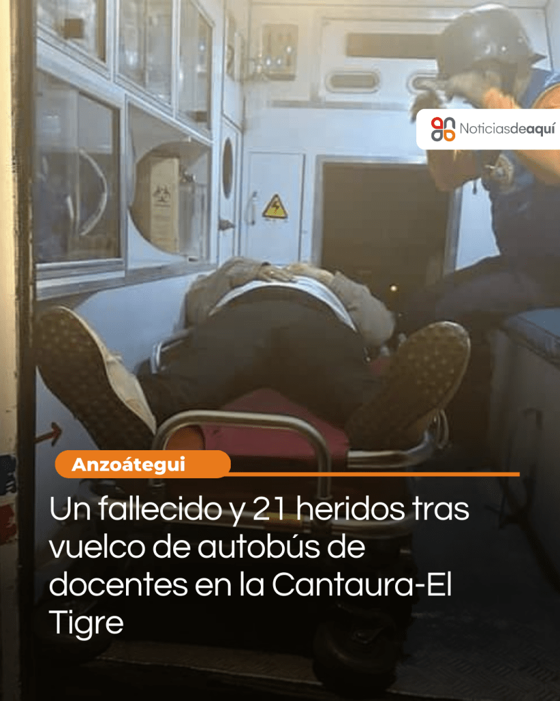 Cerca de las 10:00 de la noche de este jueves 27 de abril un autobús que cubría la ruta Ciudad Bolívar Caracas se volcó en la carretera Cantaura-El Tigre, en las inmediaciones de Tank Farm.