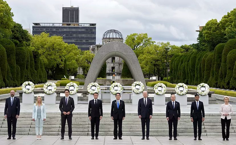 No es una fotografía de grupo cualquiera. Más allá de que los protagonistas que aparecen dentro del encuadre sean los líderes de las democracias más ricas del planeta, la instantánea está cargada de un simbolismo histórico: el escenario es el viejo corazón político de Hiroshima donde cayó la primera bomba nuclear el 6 de agosto de 1945. Y sí, en el centro de la foto, a la izquierda del anfitrión japonés, Fumio Kishida, está el presidente del país que lanzó la bomba, el estadounidense Joe Biden, el único de todos los presentes que había nacido entonces.