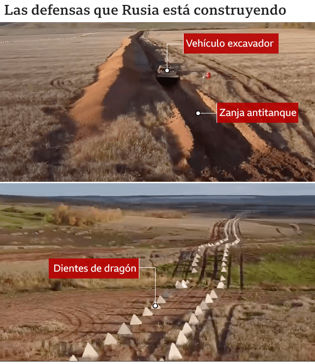Esto demuestra que Rusia se está preparando para defender zonas de terreno, que no tienen protección natural de colinas y ríos, con una red de trincheras más amplia.