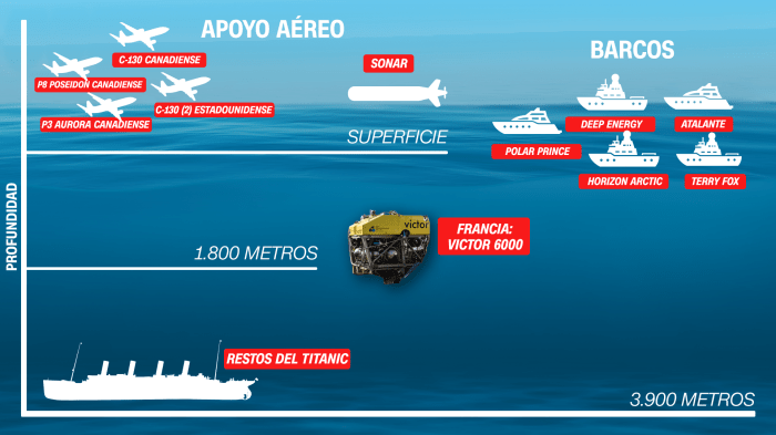 El esfuerzo de rescate multinacional ahora se ha convertido en una misión de recuperación, con un vehículo operado a distancia que recorre el fondo del océano en busca de restos de la implosión mortal.