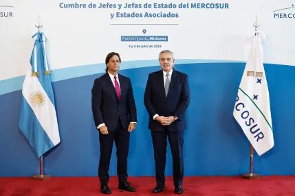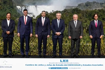 Las tratativas con los Veintisiete han sido el principal asunto en esta reunión en la que participaron presencialmente, por primera vez desde 2019, los mandatarios de los cuatro miembros plenos del bloque: Alberto Fernández (Argentina), Lula (Brasil), Mario Abdo Benítez (Paraguay) y Luis Lacalle Pou (Uruguay).