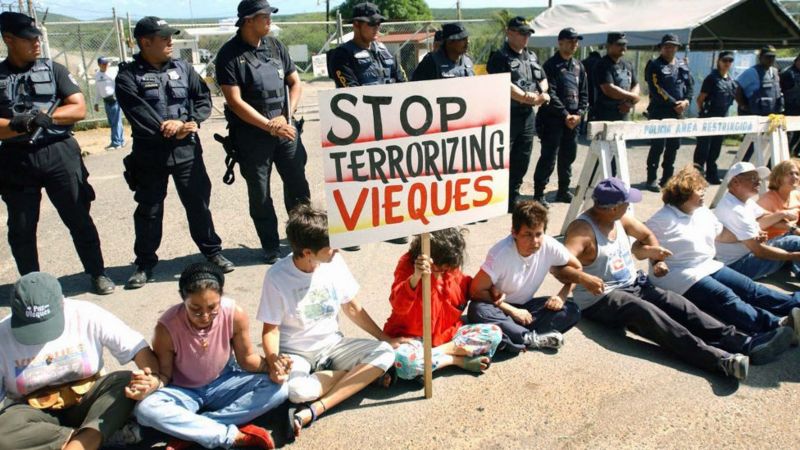 La Marina de EE.UU. llegó a Vieques, un pueblo que en la actualidad tiene unos 9.000 habitantes, a principios de la década del 1940. Miles de personas sufrieron expropiaciones y fueron desplazadas. Los militares ocuparon el 75% del territorio.