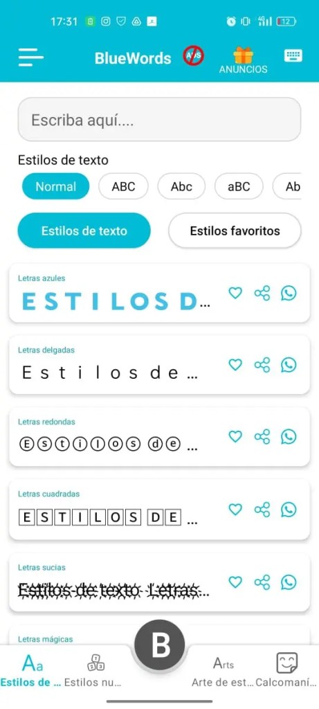 Una vez descargada la app en su dispositivo móvil, te indicará el menú de opciones que trae en cuanto a modelos de letra, estilos y colores.
