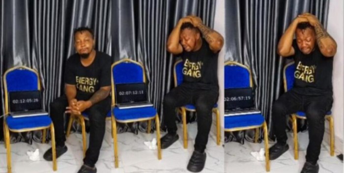 En el video, el joven aparece sentado en una silla, evidentemente llorando, junto a un cronometro que marcaba al parecer dos horas y varios minutos haciendo el reto.