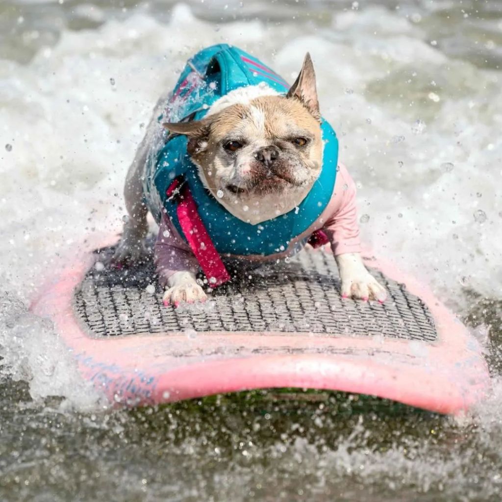 En las playas de Califonia, EstadosUnidos, cientos de personas con sus perros se dieron cita en la séptima edición del Campeonato Mundial de Surf Canino 🐕