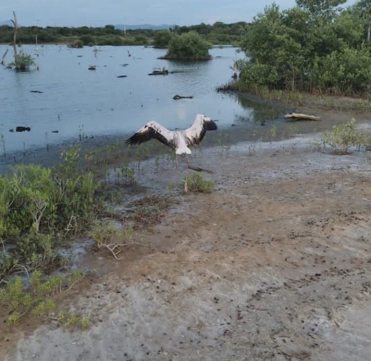 Liberaron al flamenco que en días pasados había sido rescatado en Lechería, tras presentar una herida importante en la base de su cuello.