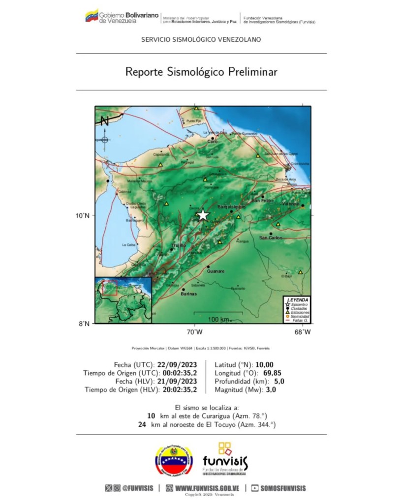 Desde las 7:36 pm hasta las 08:16 pm de este jueves 2q de septiembre, Funvisis registró 4 sismos en el estado Lara, dos de los cuales no fueron sentidos.