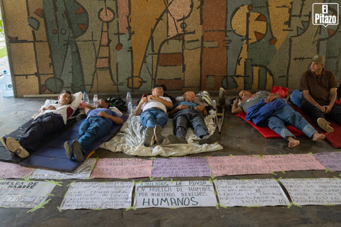 Jubilados y pensionados de Pdvsa cumplen su décima jornada en huelga de hambre en la Universidad Central de Venezuela (UCV) en reclamo de incrementos en los pagos mensuales que reciben del fondo de pensiones, atención en salud y medicina, además de beneficios alimenticios.