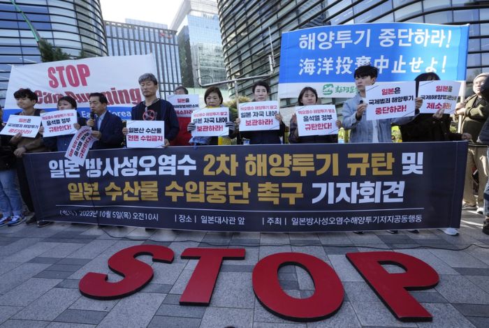 En Corea del Sur, cientos de personas se han reunido este jueves frente a la embajada japonesa en Seúl en protesta, para exigir que Japón detenga la liberación de agua radiactiva al océano, con carteles que afirman “Oponerse a liberar la segunda agua radiactiva al océano”.