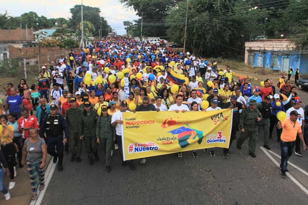 A su llegada al boulevard Orinoco, la marcha encabezada por el coordinador y demás integrantes del Comando de Campaña Venezuela Toda, en compañía de representantes de las Fuerzas Armadas, partidos aliados y organizaciones civiles del municipio, entre consignas, vítores y mucho entusiasmo se sumaron a la campaña. para asegurar la Victoria el próximo 3 de diciembre, y decir cinco veces SI como ratificación de su compromido con el Esequibo venezolano.