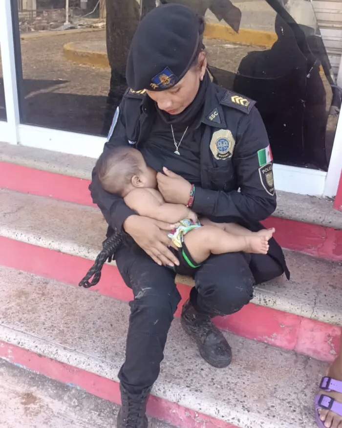 La mujer policía fue voluntaria para asistir a las labores de apoyo en Acapulco y allí se ofreció para amamantar a un bebé de cuatro meses que no había comido bien en más de dos días debido a la crisis causada por ‘Otis’.