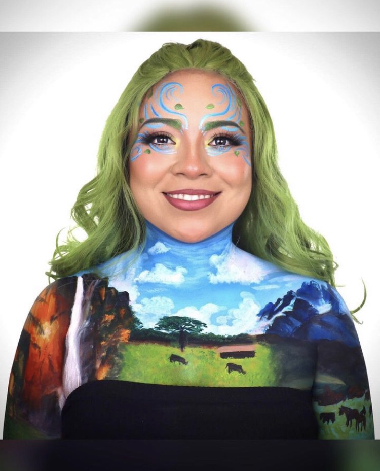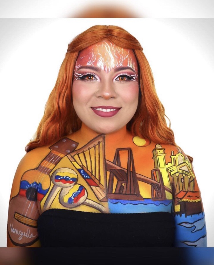 “El salto Ángel”, los llanos y los Andres venezolanos también fueron plasmados en su piel. Al igual que, simularon las despedidas de las familias que han tenido que migrar en busca de mejor futuro.