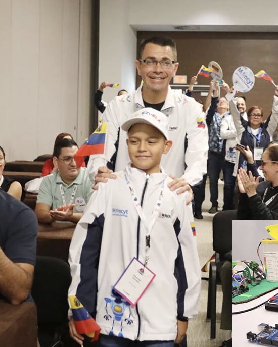 Sebastián fue uno de los 21 niños que formó parte de la delegación venezolana que participó en la Olimpiada Mundial de Robótica, que se realizó en Panamá desde el 7 hasta el 9 de noviembre pasado, y tras presentar un proyecto de ciudad inteligente y sustentable se alzó con el primer lugar en la categoría Olibots Challenge.