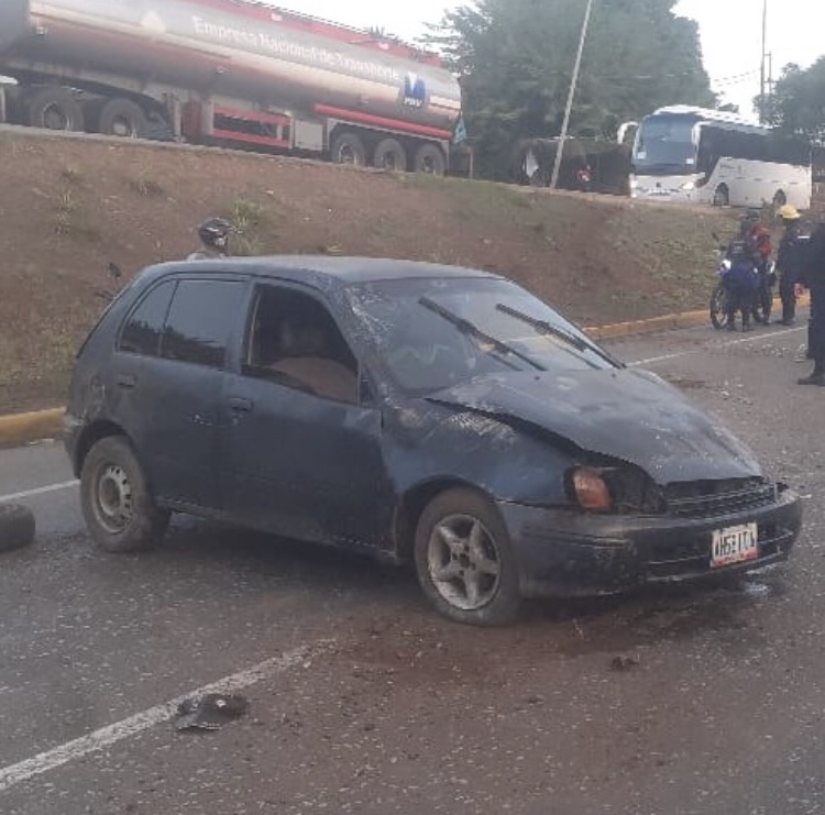 El Grupo Motorizado para la Atención de Emergencia constataron el volcamiento de un vehículo, Toyota Starlet, color azul, modelo del año 1999, conducido por un ciudadano de 60 años, quien tras el incidente resulto lesionado.