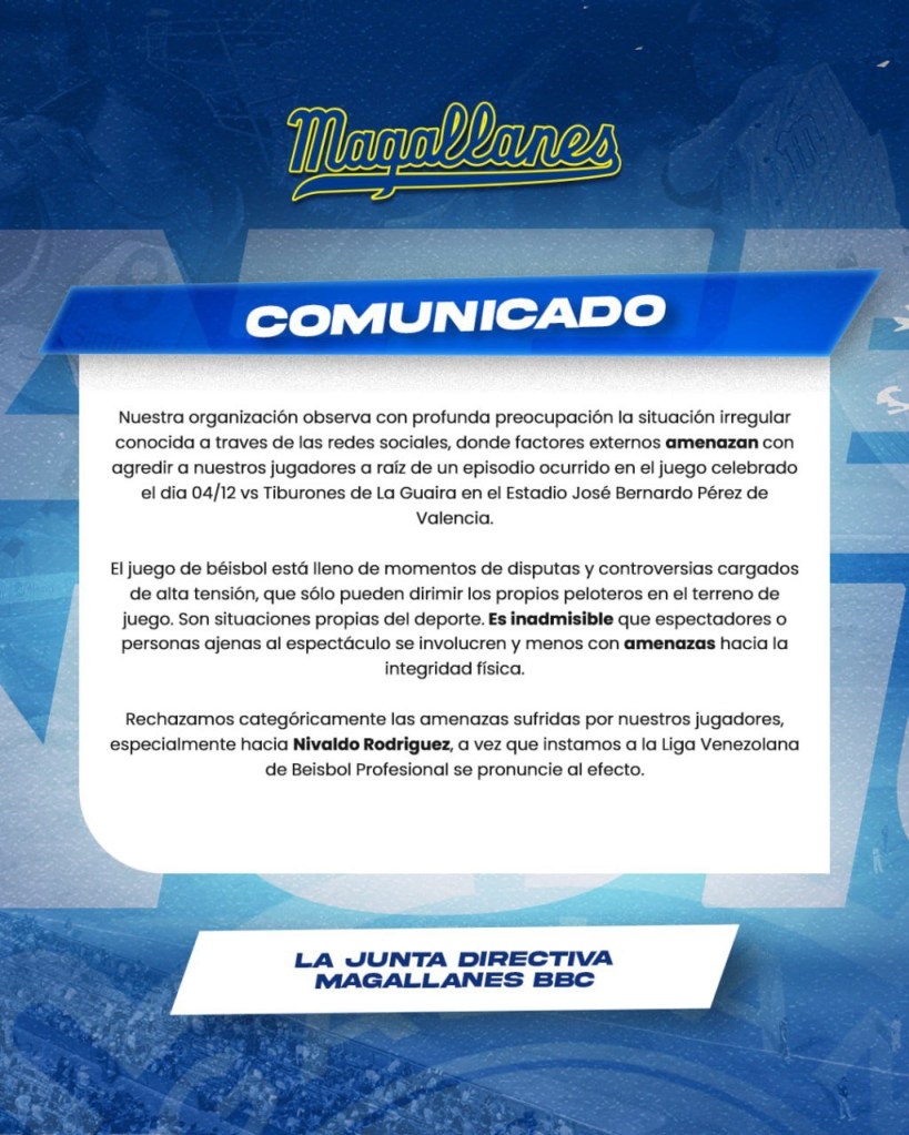 A su vez el conjunto de Valencia insta a la Liga Venezolana de Beisbol Profesional (LVBP) a tomar cartas en el asunto.