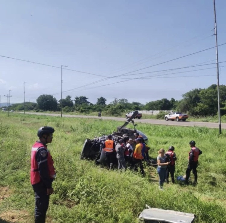 Sistema Integrado de Gestión de Riesgos atendieró estrellamiento de vehículo contra objeto fijo y volcamiento en la Autopista Gran Mariscal de Ayacucho, Municipio Simón Bolívar.