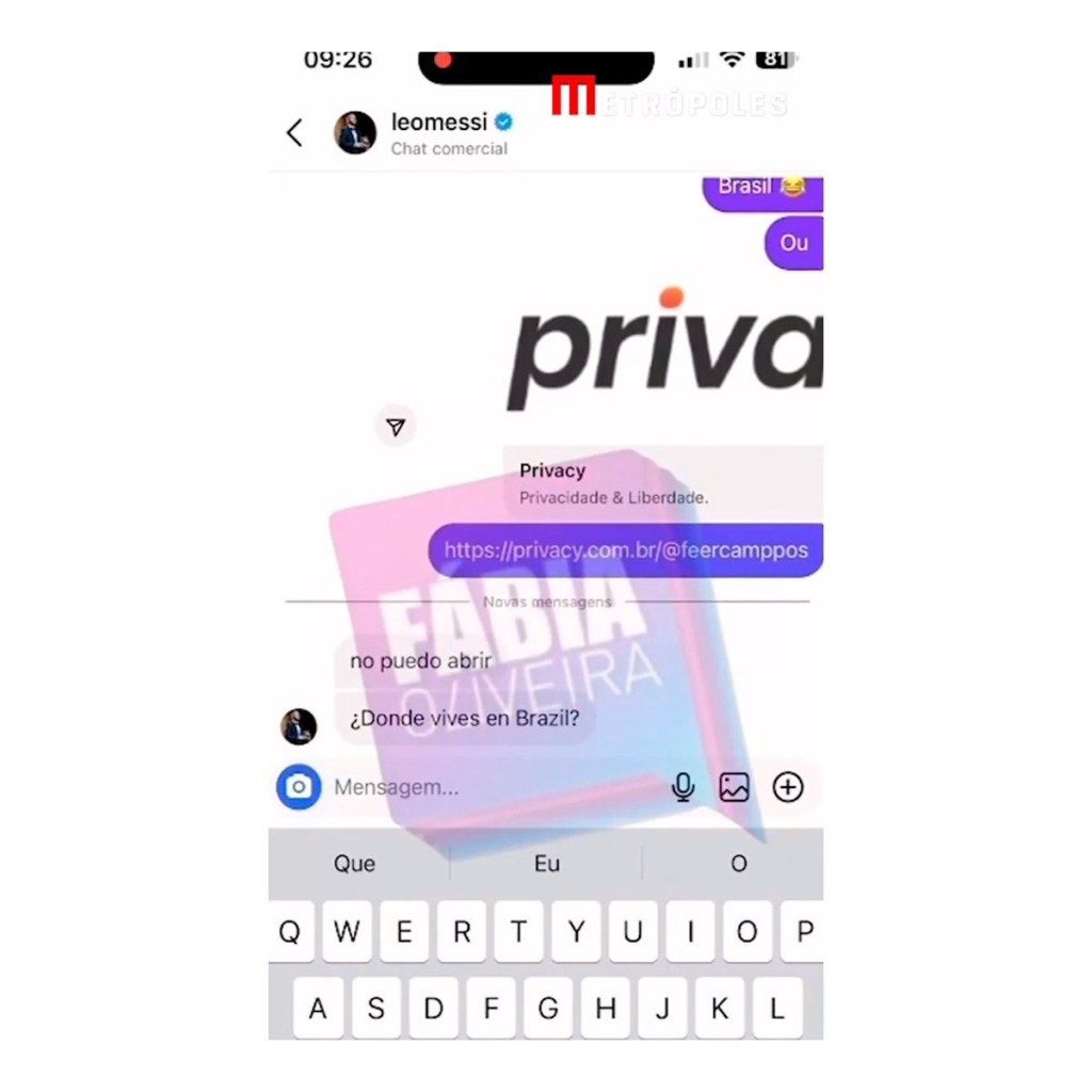 Fernanda conversó con Metropoles, revelando que mediante Instagram, recibió de Messi un «me gusta» en sus historias.