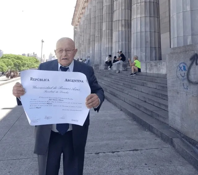 Julio Schenone es protagonista de una historia de perseverancia y determinación, pues con la edad de 87 años logró el sueño de convertirse en abogado, tras graduarse en la Universidad de Buenos Aires, Argentina. En una entrevista con el medio Infobae, Schenone permitió que se conociera un poco más de su vida y como tomó la decisión de retomar sus estudios de Derecho a los 76 años.