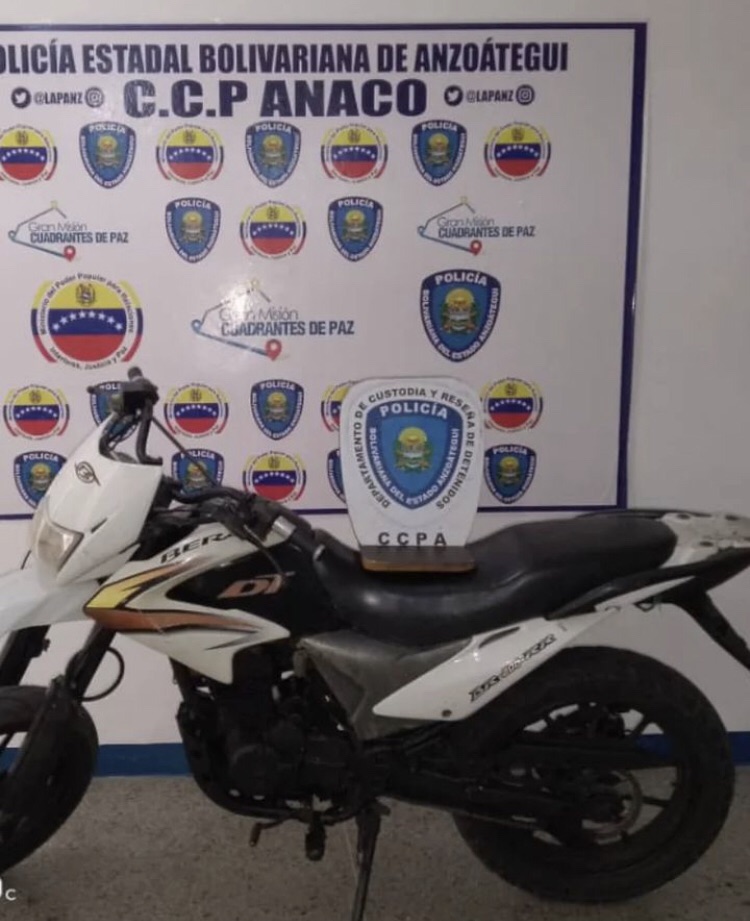 El director de Polianzoátegui, Comisario Jefe Power Cano, indicó que la pareja se desplazaba a bordo de una moto Bera BR-200, color blanco, placas AC2D78S, cuando al notar la presencia policial adoptaron una actitud sospechosa.