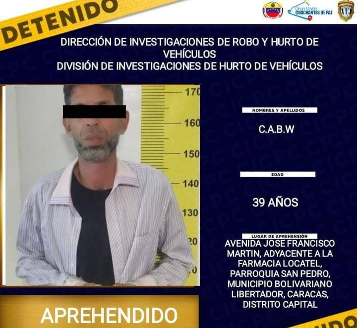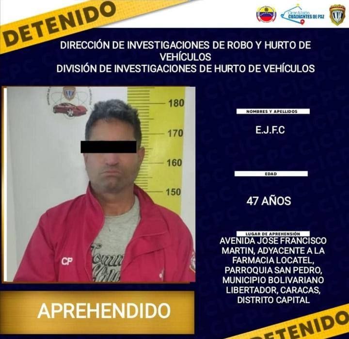 Dichos criminales fueron detenidos en la avenida José Francisco Martí, parroquia San Pedro, municipio Libertador, Caracas, siendo verificados en el Sistema de Investigación e Información Policial (Siipol), arrojando que Anthony, posee registros policiales por robo genérico, cambio ilícito de placas y seriales de vehículos; además se encontraba bajo régimen de presentación anye el Tribunal Segundo de ejecución de Coro; Eleazar, los posee por robo genérico y Carlos, por homicidio calificado y secuestro calificado y, una solicitud por el Juzgado Primero de Primera Instancia Estadal y Municipal del estado Falcón por Homicidio calificado con alevosía.