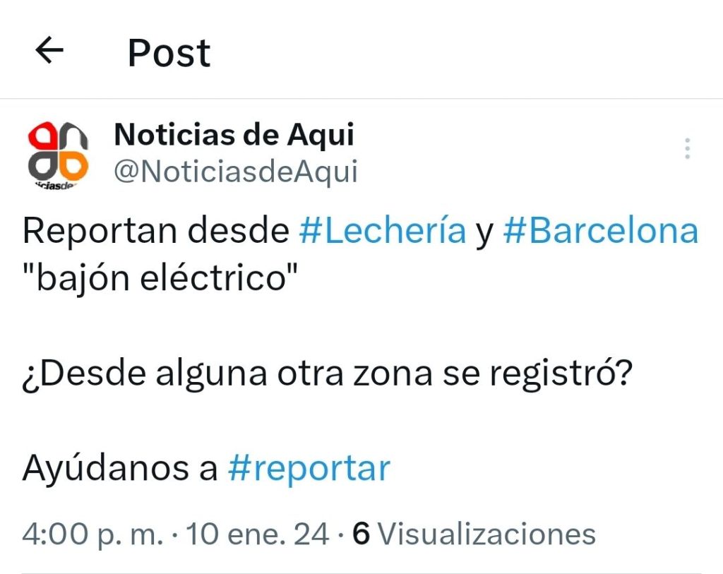 A las 3:50 pm aproximadamente se registró una fluctuación eléctrica que según reportes de usuarios en redes sociales se percibió en zona norte de Anzoátegui, El Tigre, Anaco, zona oeste. También llegan reportes desde la Isla de Margarita, Maracaibo, San Felipe/Yaracuy, Valencia, El Vigía.
