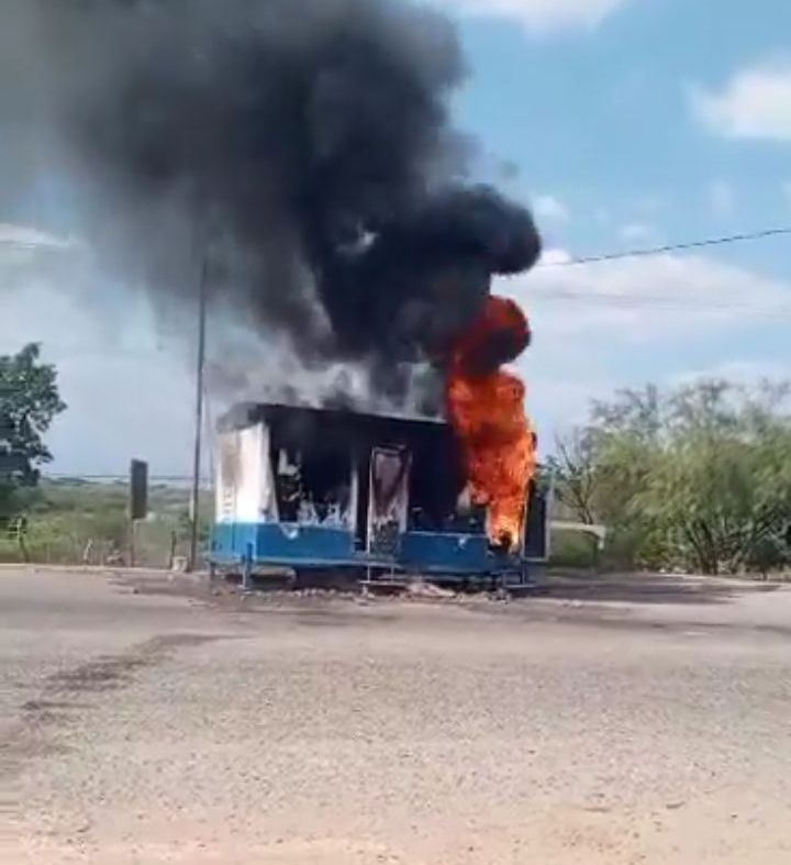 Manifestantes incendiaron, este 10 de enero, un puesto móvil de la Polilara, ubicado en la avenida 14 de Febrero con avenida Rotaría para exigir justicia por el asesinato de Aiverson Torres, de 17 años.