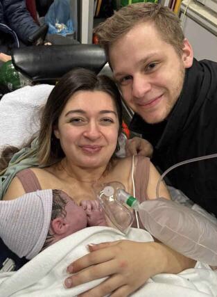 Analysia Beck, sintió contracciones dos semanas antes de la fecha prevista para el parto, y despertó a su esposo para decirle que empacara el auto para ir al hospital.