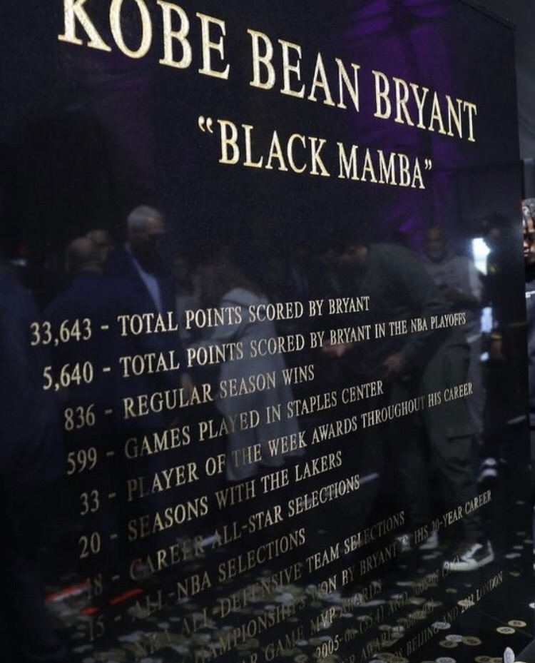 La estatua está dedicada a «Kobe Bean Bryant – ‘Black Mamba’».