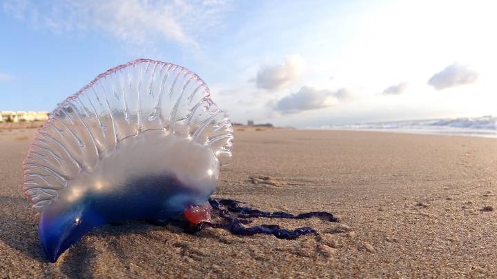 Señaló que la picadura de carabelas portuguesas o falsas medusas produce síntomas como vómitos, dolor abdominal fuerte, sensación de quemazón en la zona afectada y, en casos graves, la muerte.