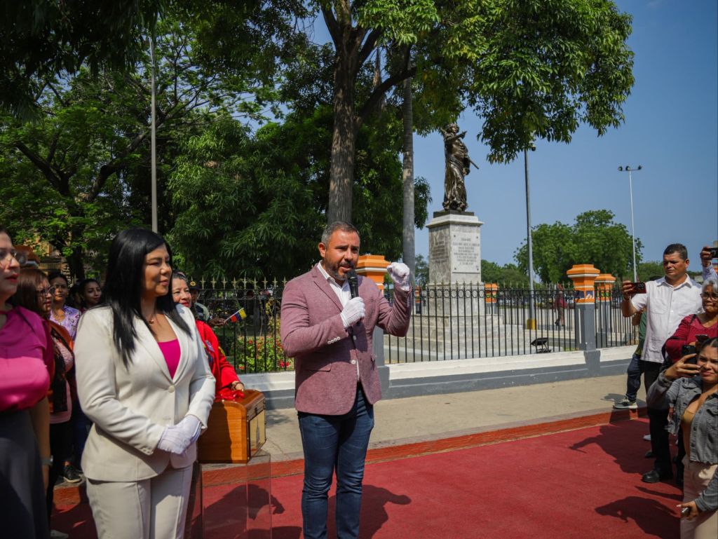 El gobernador, antes de entregar a funcionarias militares la urna, destacó lo orgulloso que se siente y el honor que significa acompañar este acto histórico de reivindicación patriótica, que realiza el gobierno revolucionario y chavista de Nicolás Maduro, “quien hoy con determinación y voluntad reivindica a una de las mujeres más importantes de la historia de Venezuela”.