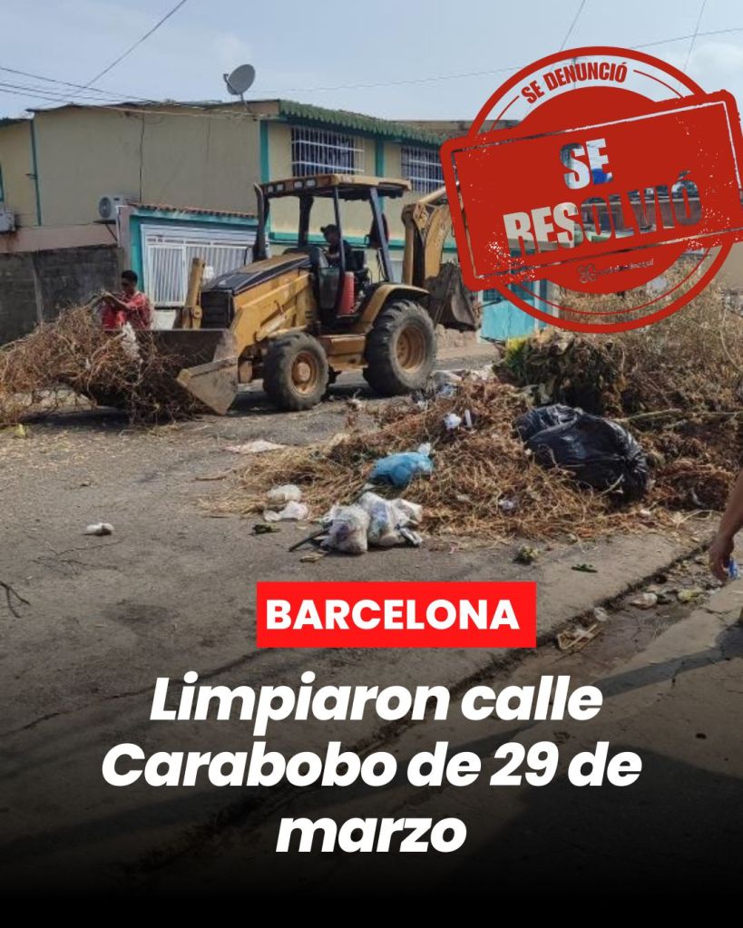 Desde la calle Carabobo, de 29 de marzo en Barcelona, reportan que luego de publicar la denuncia sobre la acumulación de basura que había, este sábado en la mañana limpiaron el lugar.
