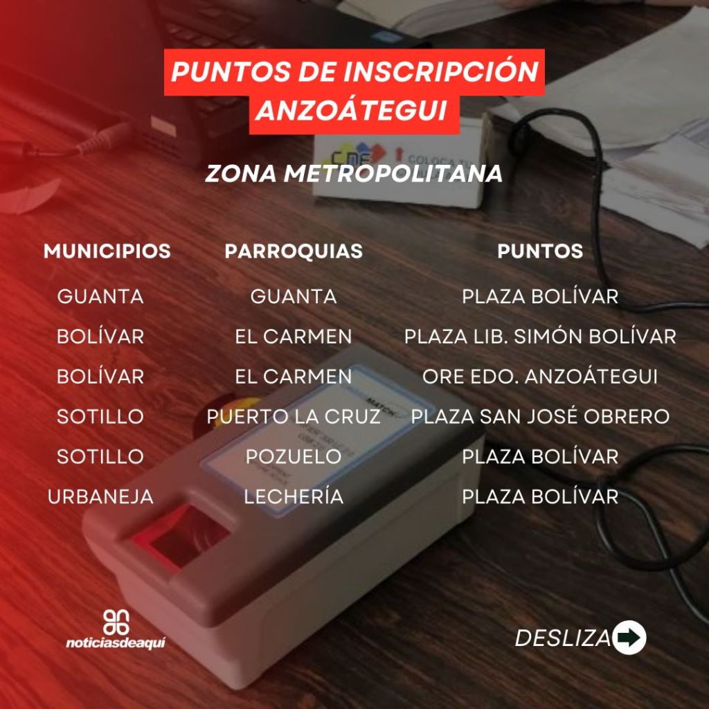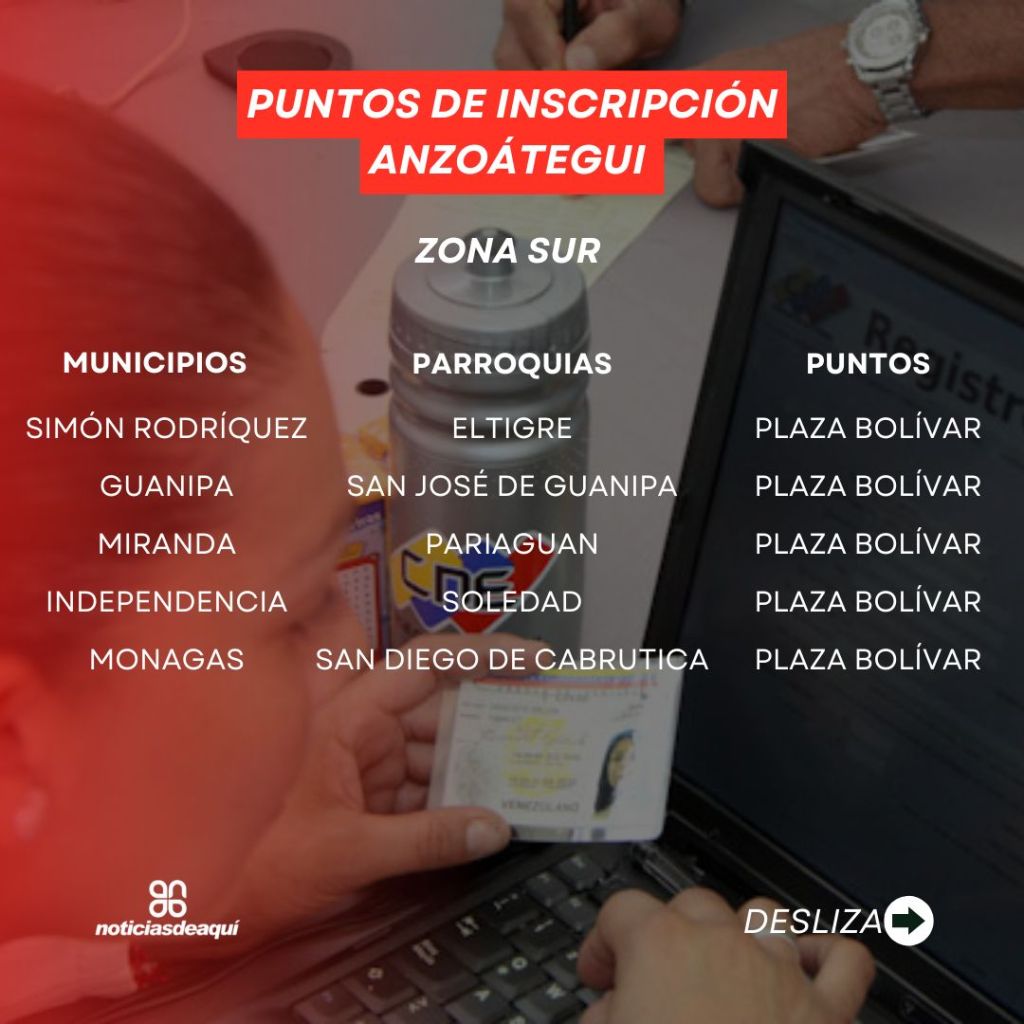 Estos son los puntos de Inscripción para el Registro Electoral que habilitó el CNE en Anzoátegui.
