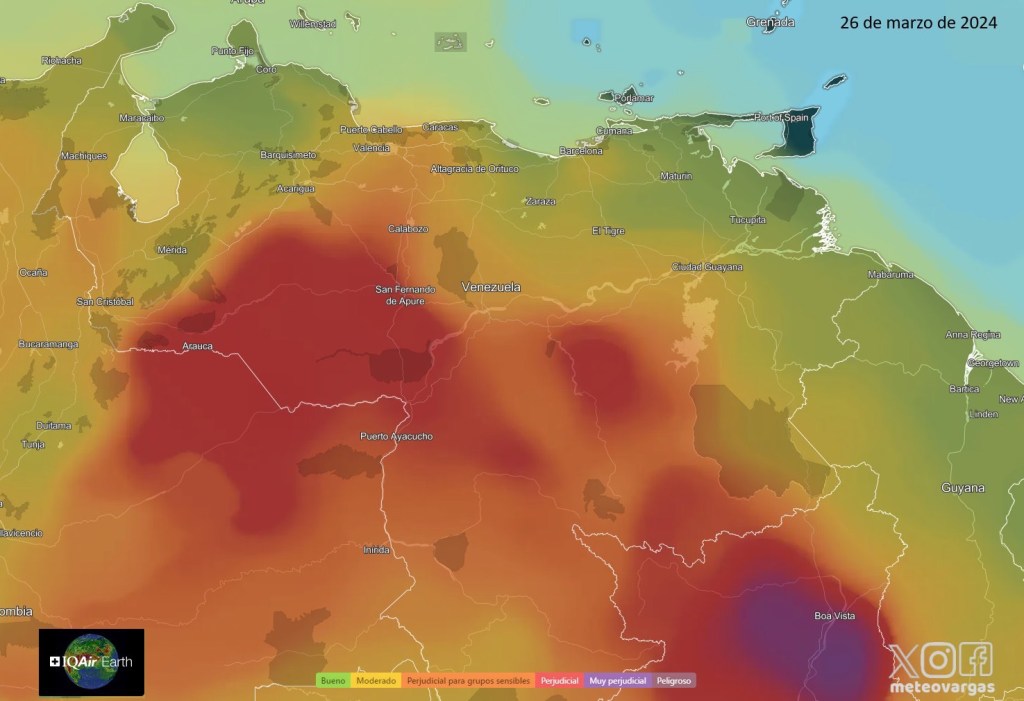 El meteorólogo Luis Vargas, compartió a través de la red social X una actualización de la calidad del aire en el país, esté martes 26 de marzo.