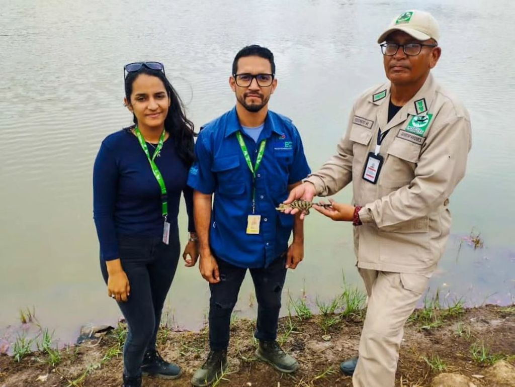Fue liberado un ejemplar de baba (Caimán Crocodylus) en las inmediaciones de la laguna Rómulo Gallegos de Lechería.